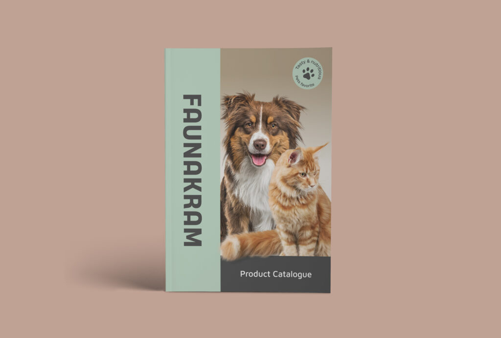 Kataloget giver et professionelt overblik over Faunakrams mange produkter og er et vigtigt salgsværktøj både digitalt og fysisk.